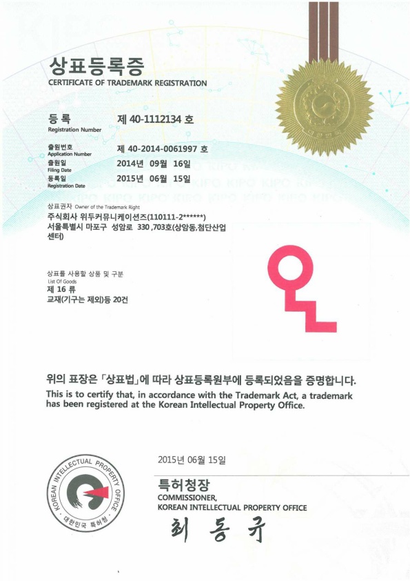 [Korea/Trademark] OLL 16 Class 페이지 정보 작성자 WeDu 댓글 0건 조회 5,626회 작성일 19-06-04 10:46 본문 2015-06-15 Trademark 40-1112134 16 Class List Previous[Korea/Trademark] OLL 09 Class 19.06.04 Next[Korea/Trademark] OLL 41 Class 19.06.04