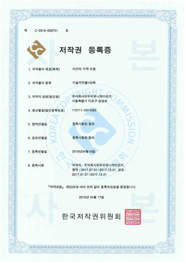 [한국/저작권] 리안의 수학 모험 페이지 정보 작성자 WeDu 댓글 0건 조회 5,520회 작성일 19-05-30 19:07 본문 2018-04-16 저작권 C-2018-009751 리안의 수학 모험 / 미술저작물>만화 List Previous[한국/저작권] 길리 19.05.30 Next[한국/저작권] 신입사원조기전력화 이러닝 콘텐츠 19.05.30